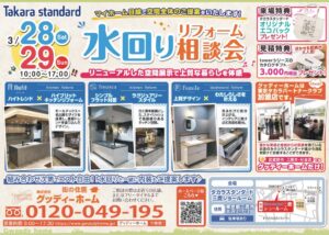 水回りリフォーム相談会、3/28㈯・29㈰開催!inタカラスタンダード三鷹ショールーム
