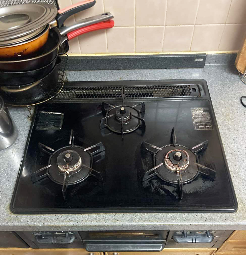 きれいにお使いのガスコンロでしたが、一口点火しなくなったため交換を実施。