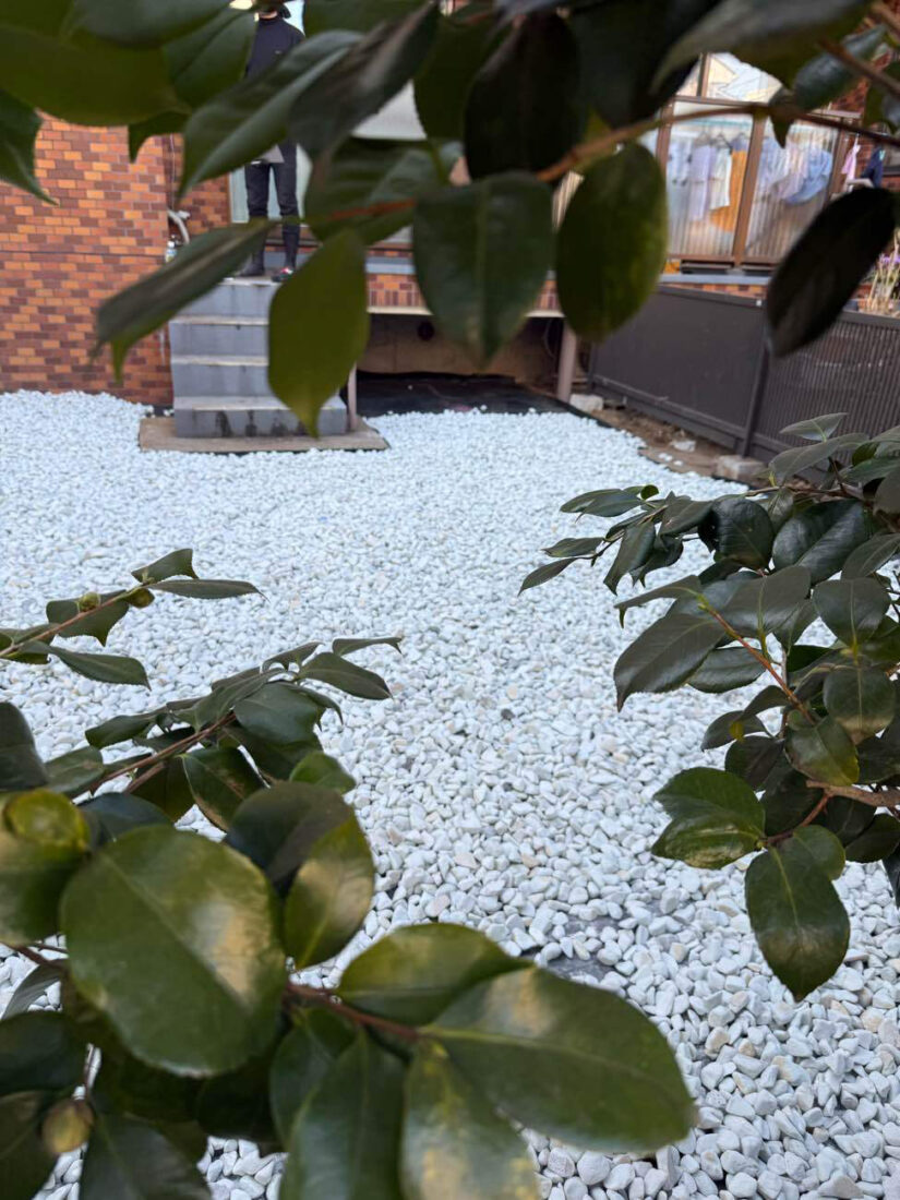 足元には防虫シートと砂利を敷き、見た目と防虫性を両立。