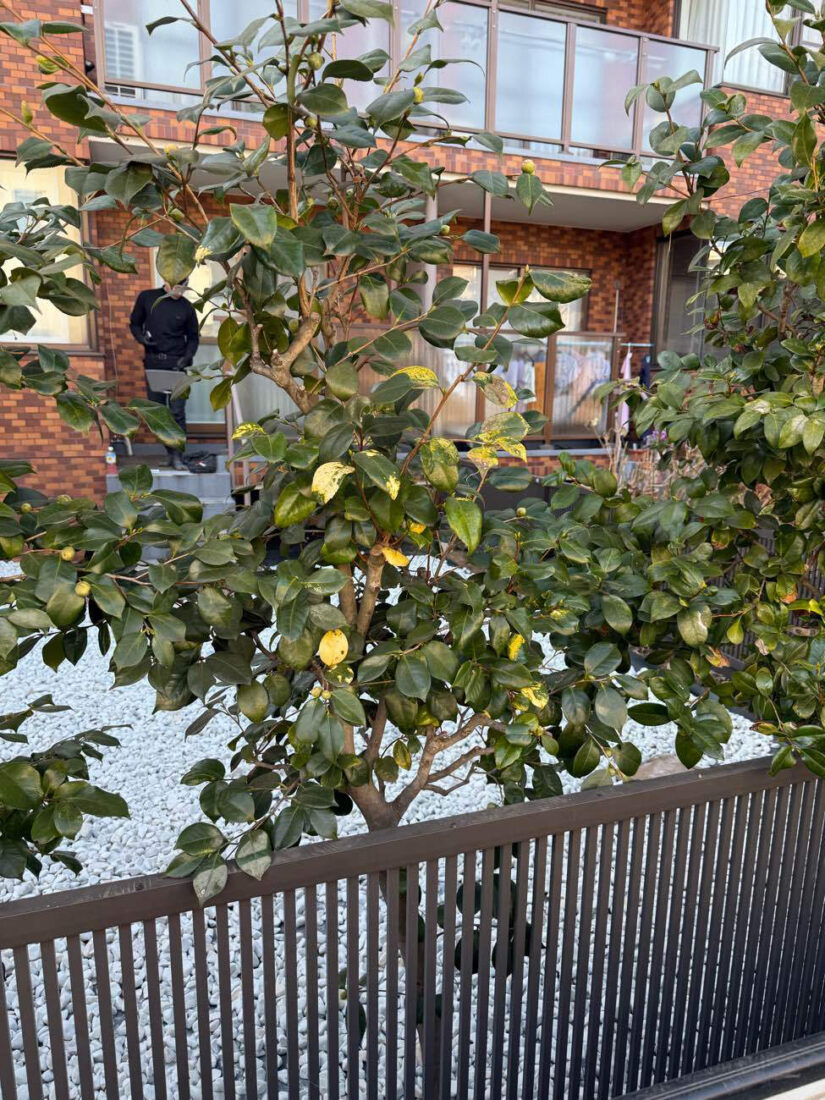 目隠しとして必要なフェンス周りの樹木は残しつつ、それ以外の大木や低木を状態に合わせて整理しました。