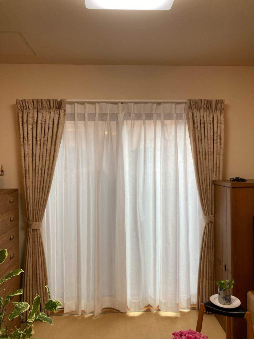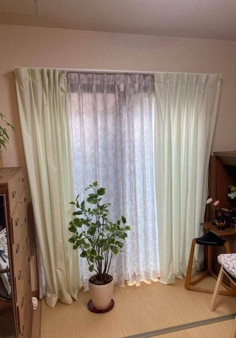 ドレープを明るい色から濃い目の色に替えることで、空間がぐっと落ち着いた雰囲気になりました。