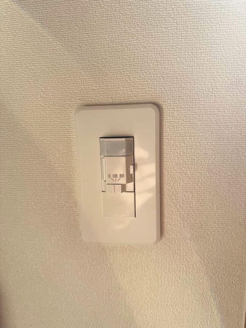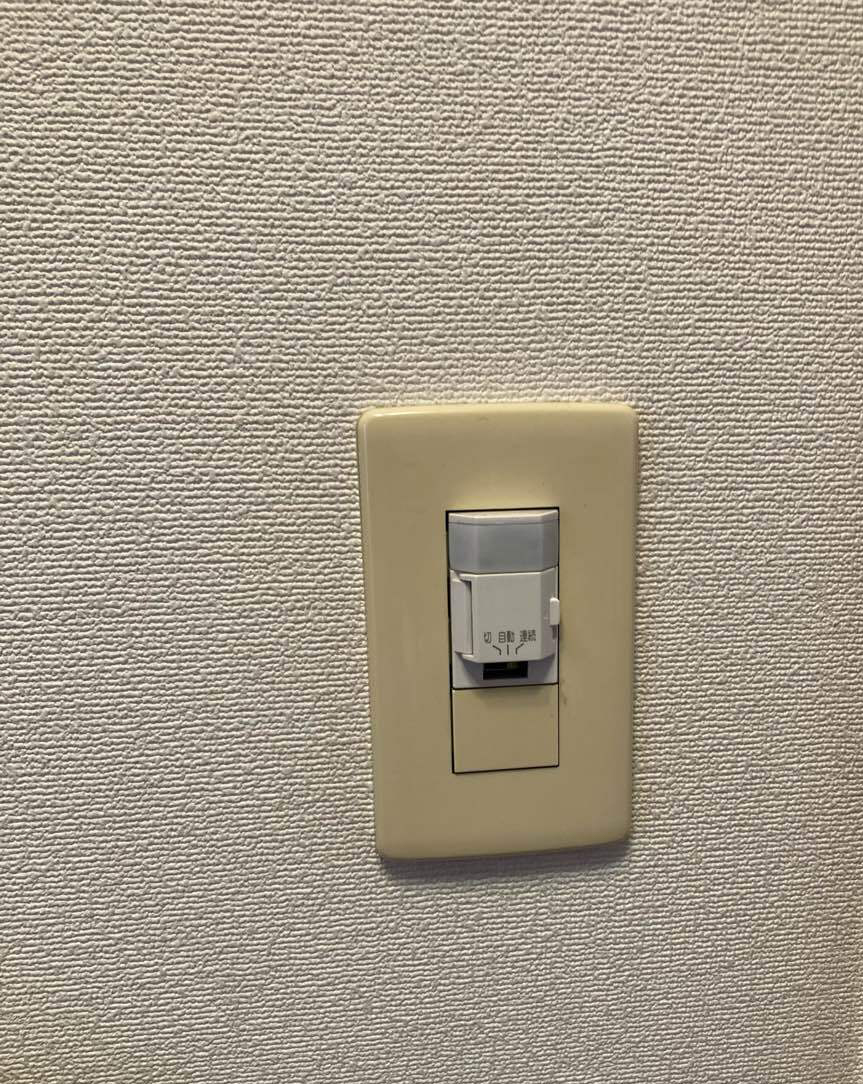 玄関照明の人感センサー付きスイッチの一部が破損してしまったため、スイッチのみの交換を行いました。