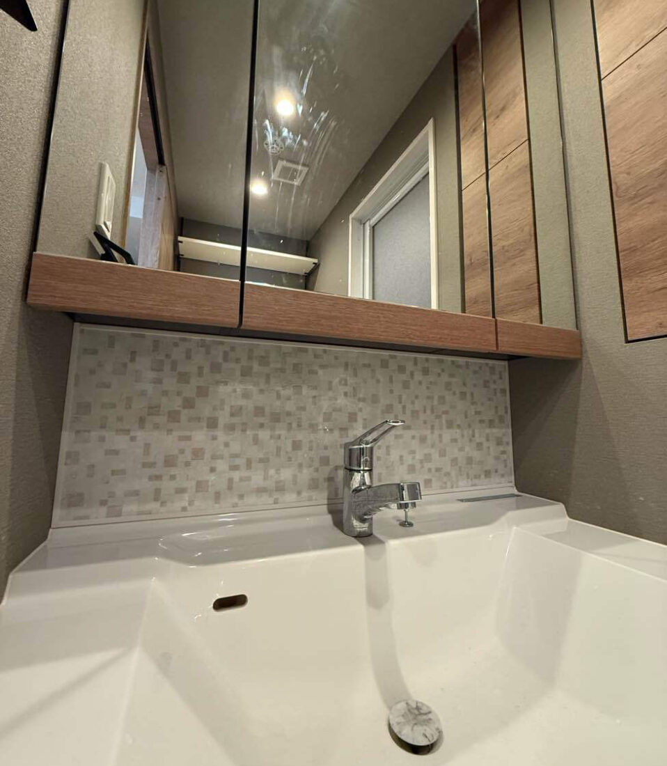 ミラー部分は、汚れに強くお手入れしやすいホーロー製パネルに交換、