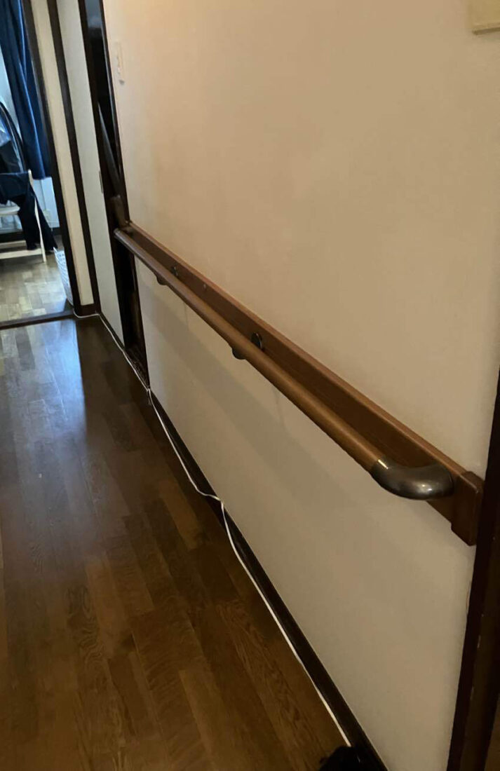 トイレ交換に合わせて、廊下からトイレまでの動線に手すりを新設しました。