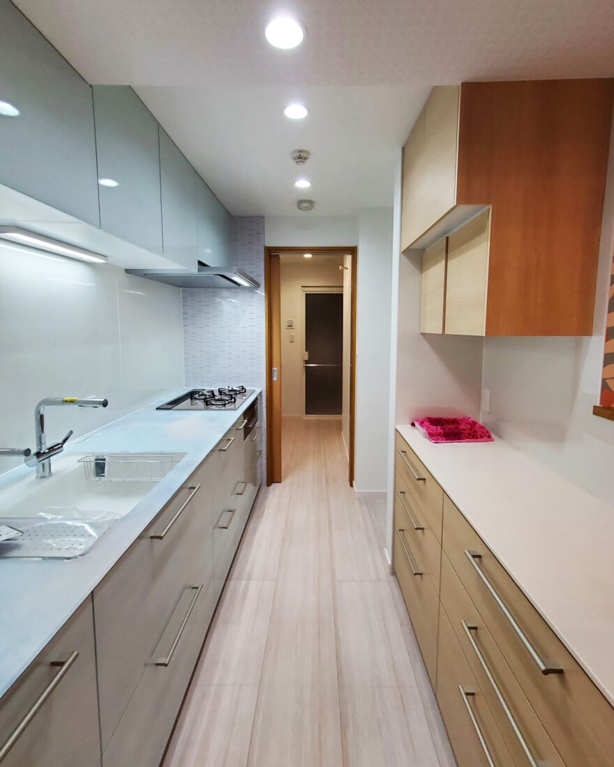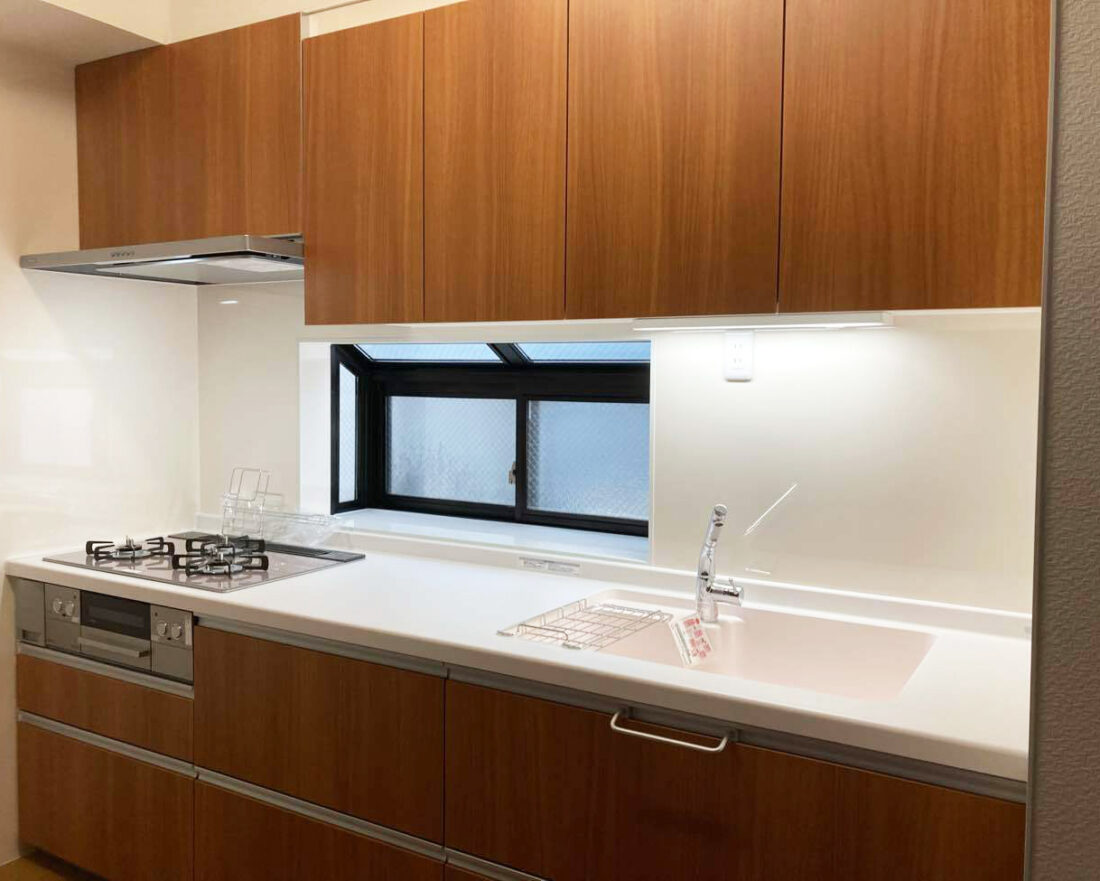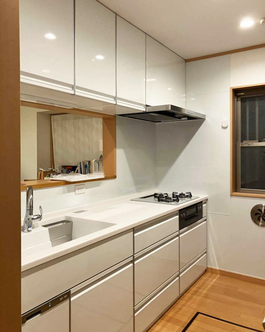 古くなったキッチンをL型からI型へレイアウトを変更し、