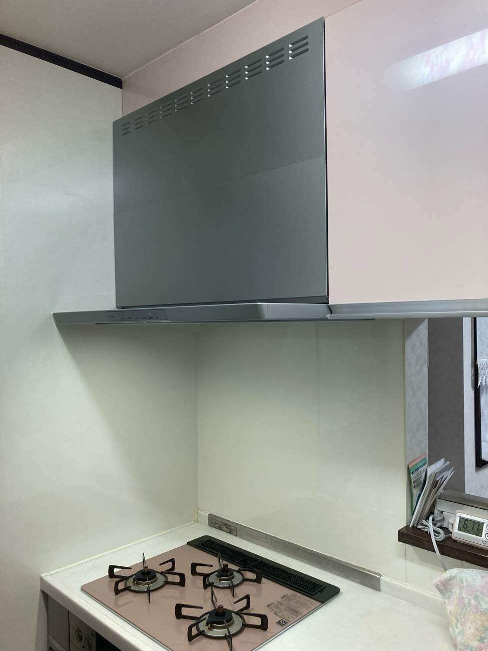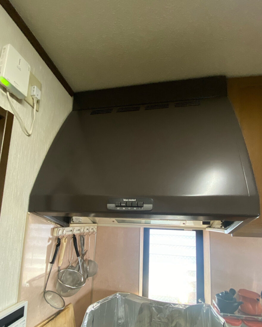清掃しやすいレンジフードにしたいとご相談いただき、ホーローが汚れの97%をガードしてくれる、タカラスタンダードのレンジフードに交換しました!