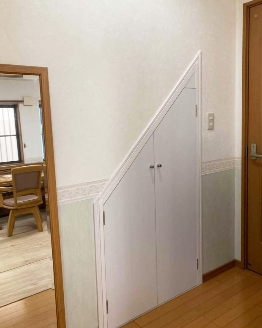 アクセントクロスはハリネズミのかわいい柄を選び、お施主様のセンスが光った玄関になりました(*^^*)
