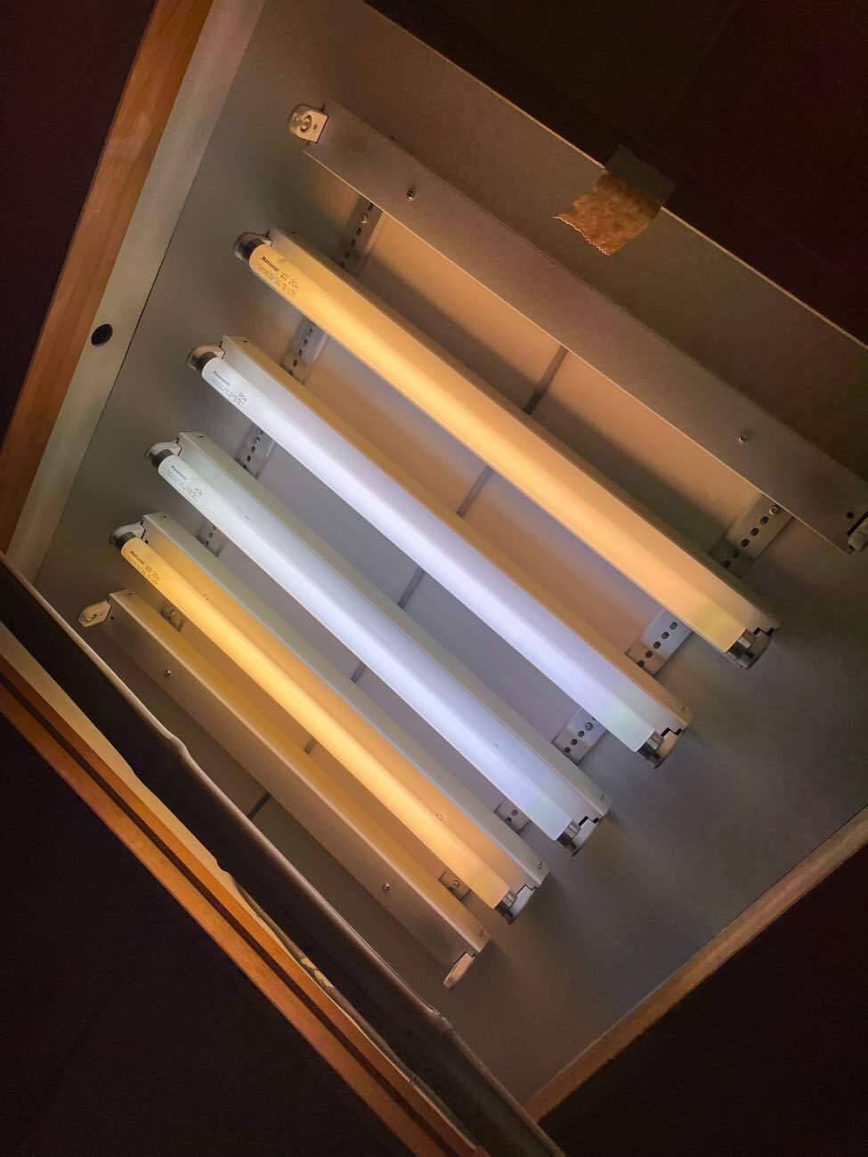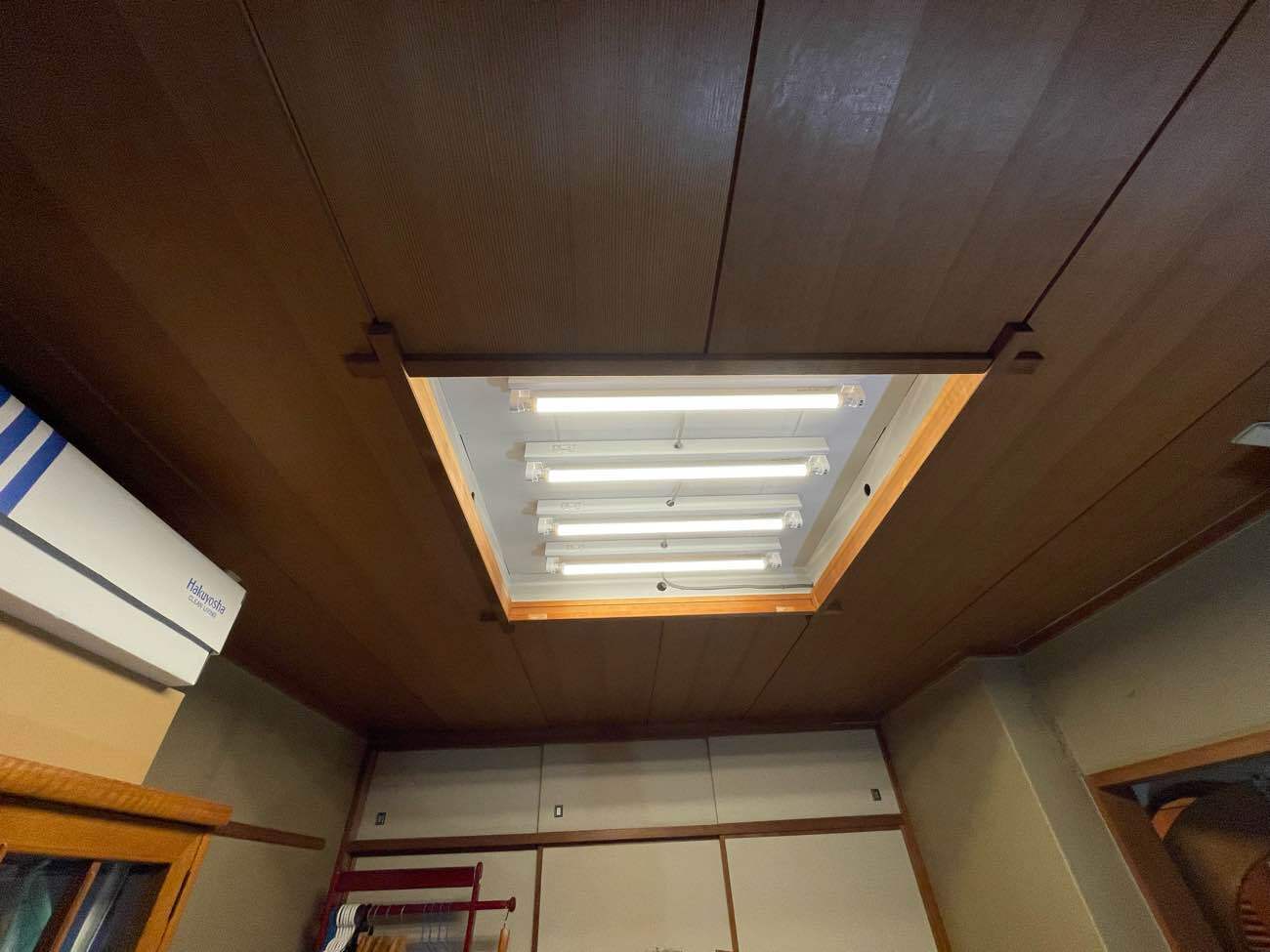 天井に埋め込まれた蛍光灯をLED照明に交換しました。あわせて家全体の照明もLEDにしたことで、明るくて省エネな空間に。長持ちするので、これからも安心して使えます✨