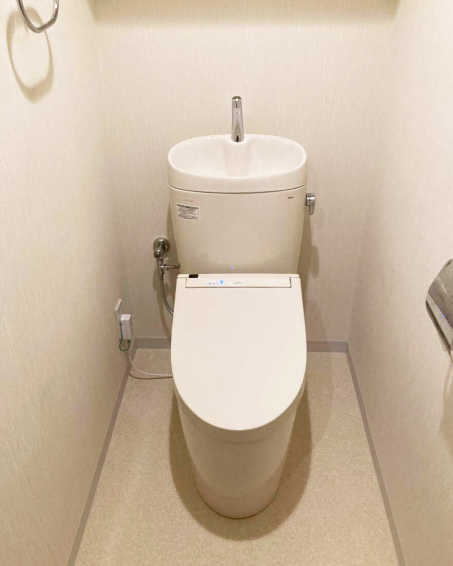 - トイレ:ピュアレストEX ウォシュレットS1A(TOTO) 床:LH-81554 (リリカラ )